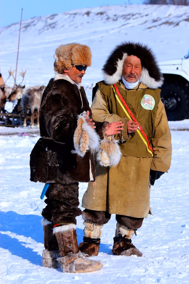 Evenki-folket i Sibir har en rik sjamanistisk tradisjon. Deres sjamaner bruker trommer og spesielle drakter prydet med dyrehuder, fjær og bjeller for å symbolisere deres forbindelse til naturen og åndeverdenen. Evenki-sjamanene går inn i transetilstander, ofte fremkalt av tromming, sang eller bruk av psykoaktive planter, for å reise til åndeverdenen.