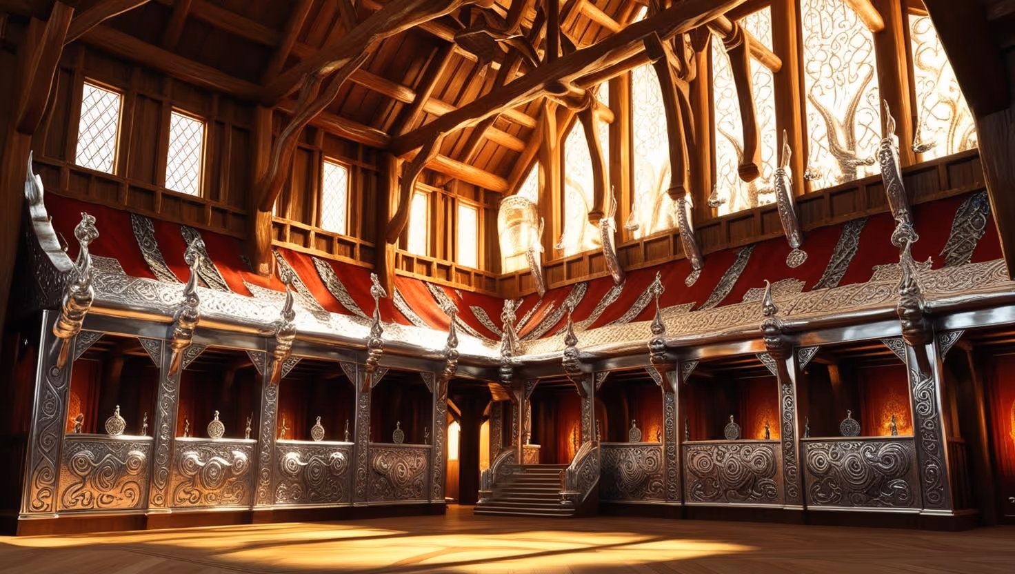 Valaskjalf, med sin sølvkledde prakt og den majestetiske tronen Hlidskjalf, er først og fremst kjent som Odins bolig og observasjonspost. Herfra kan han se ut over alle de ni verdener. Men Valaskjalf fungerer også som et sted hvor andre guder møtes for å diskutere kosmiske spørsmål og ta avgjørende beslutninger.