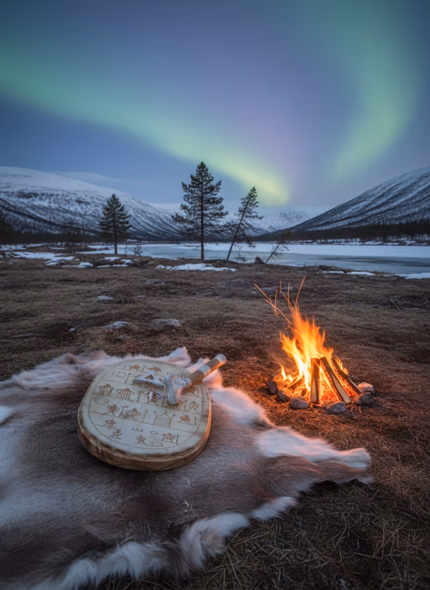 Førestill deg en kald kveld i en samisk leir. Rundt bålet sitter noen av bygdas folk samlet, men midt i rommet står den viktigste gjenstanden – noaidiens tromme, tung og gammel som landets historie. Trommen er ikke bare et instrument, men en portal til åndeverdenen, et kart over verden og en nøkkel til skjult kunnskap.